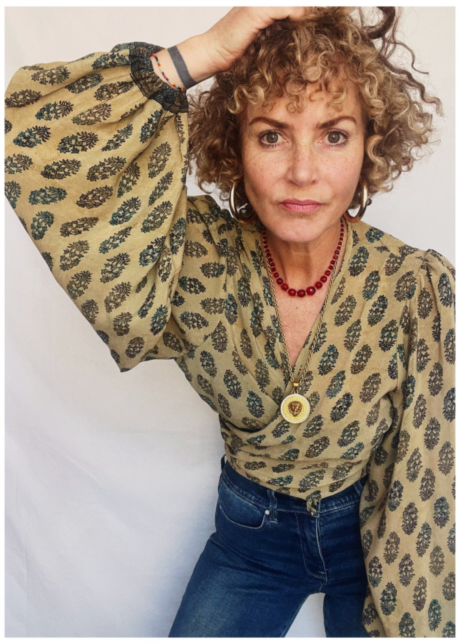 Creating rare and magical pieces, reclaiming silk crepe sari.