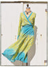 A beautiful wrap style dress, designed to compliment every body shape, they are unbelievably flattering. These wrap dresses truly give off vintage screen star vibes. Carefully pieced together for maximum contrast and impact, in the most incredible, dramatic colours. These wrap dresses are crafted from vintage 100% silk crepe, repurposed Indian sari, and each piece is one-of-a-kind, once they're gone, they are gone forever. Each colour is available in only the one size.