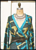 A beautiful wrap style dress, designed to compliment every body shape, they are unbelievably flattering. These wrap dresses truly give off vintage screen star vibes. Carefully pieced together for maximum contrast and impact, in the most incredible, dramatic colours. These wrap dresses are crafted from vintage 100% silk crepe, repurposed Indian sari, and each piece is one-of-a-kind, once they're gone, they are gone forever. Each colour is available in only the one size.