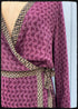 A beautiful wrap style dress, designed to compliment every body shape, they are unbelievably flattering. These dresses truly give off vintage screen star vibes. Carefully pieced together for maximum contrast and impact, in the most incredible, dramatic colours. These wrap dresses are crafted from vintage 100% silk crepe, repurposed Indian sari, and each piece is one-of-a-kind, once they are gone, they are gone forever. Each colour is available in only the one size.