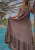 Eustoma Silk Crepe Swing Maxi Dress ~ Taupe XS