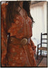 A true bohemian, 70's inspired, kaftan style maxi dress. My tailors have made perfect use of the contrasting pattern on each sari and embellished each dress down the centre front and on each sleeve. A gorgeous, sexy plunging neckline, with 3 buttons and slightly ballooned sleeves that end with an elastic cuff.